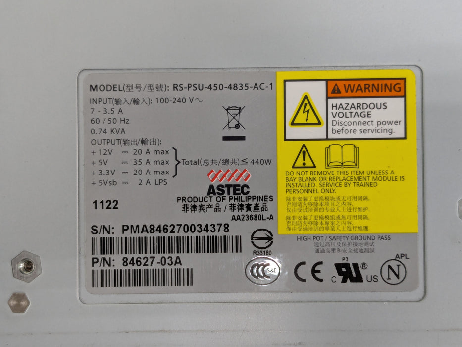 Dell 84627-03A EqualLogic 440W Power Supply Module PS5500 PS6500 PS6510