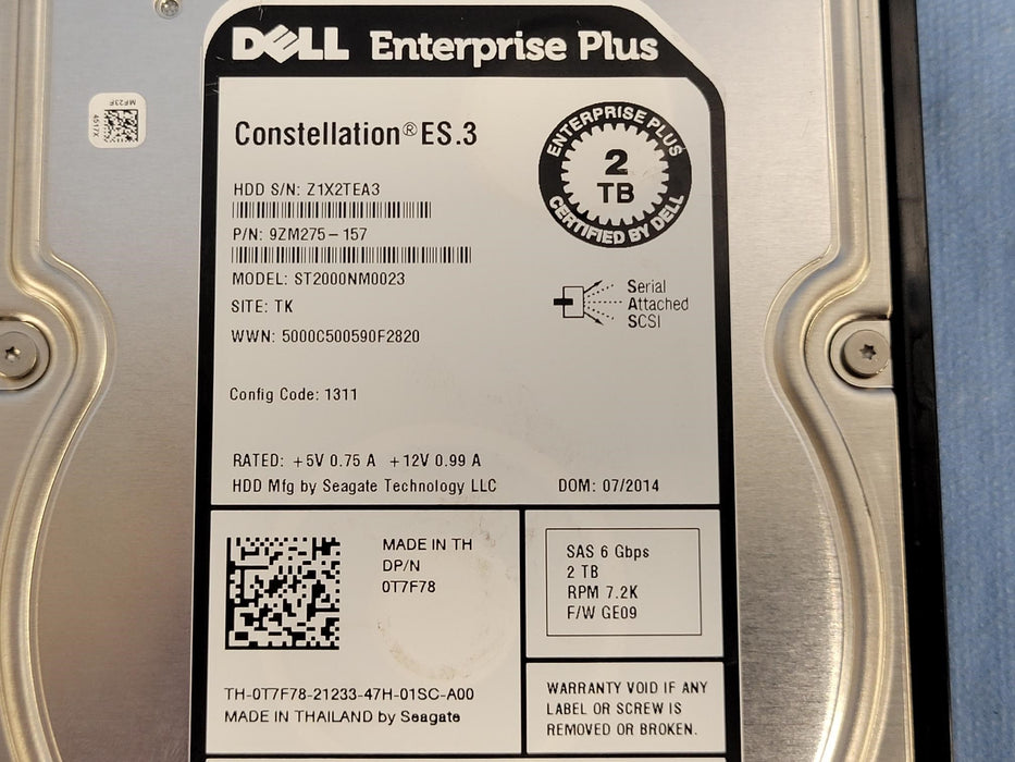 Dell EqualLogic 2TB 7.2K 64MB 3.5" NL Enterprise SAS Hard Drive T7F78