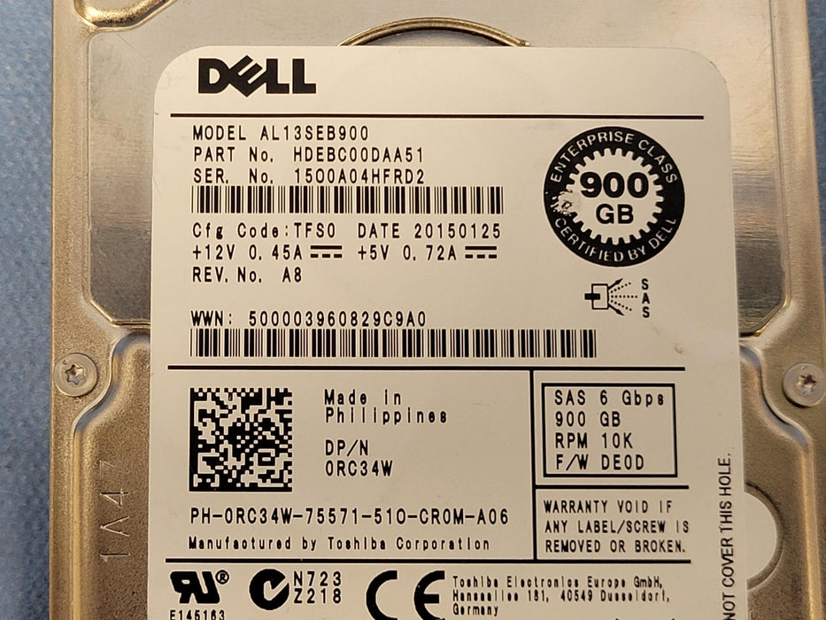 Dell RC34W 900GB 10k 6Gb/s 2.5" SAS Hard Drive